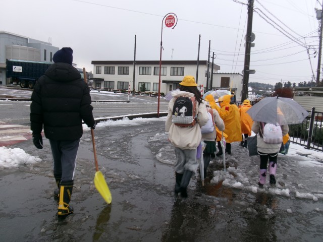 足下に気を付け、元気に登校しました。