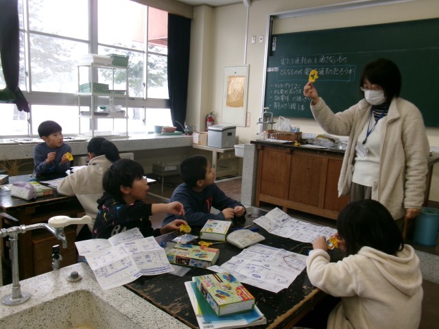 どのようなものが電気を通したか、子供たちに聞いてみてください。
