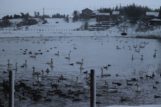 今日の田尻池もたくさんの鳥たちで賑わっていました。白鳥の飛来数は100羽くらいでした。