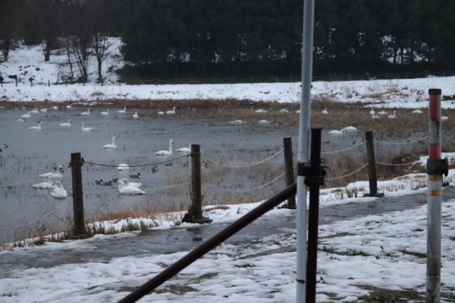 今日の田尻池は、雨が降っていました。休み中の三日間も100羽ほどの白鳥が飛来していたようです。