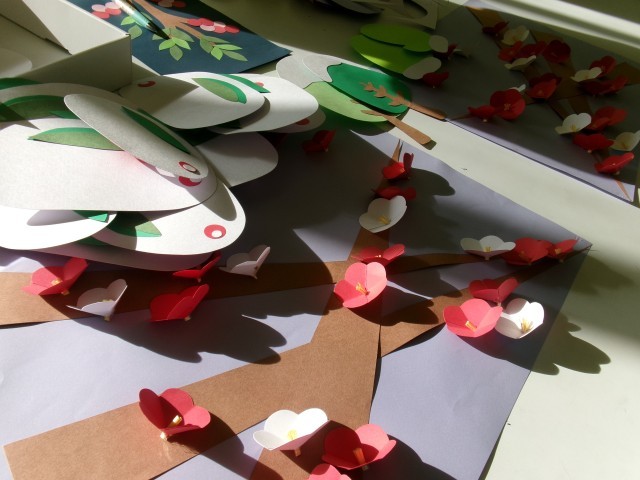 スクールサポートスタッフさんが、階段の掲示板などに飾る「季節の掲示づくり」に取り組んでくださっていました。