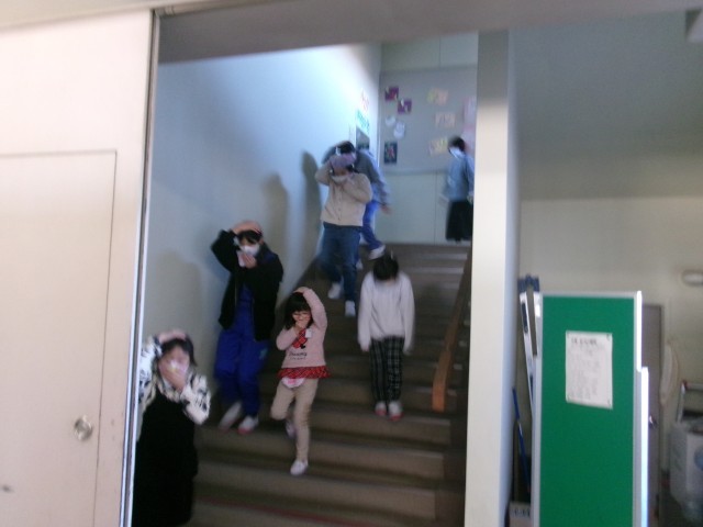 昼休みに避難訓練をしました。