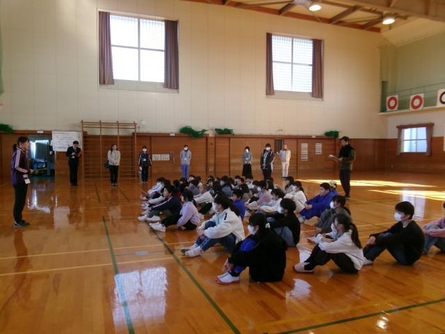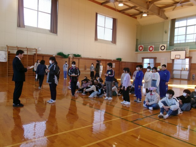 上学年がリードし、下学年を安全に体育館に誘導しました。