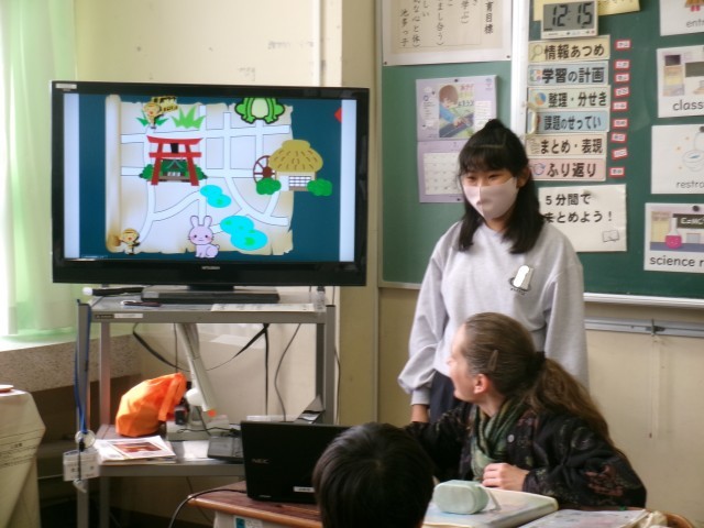 画面のキャラクターの動きを見ながら、道案内しました。