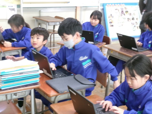 教科書の学習内容を終えた後、クロムブックで練習問題に挑戦です。