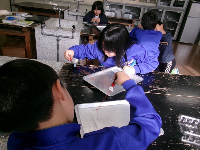 実験しながら、磁石の性質を理解する子供たちです。