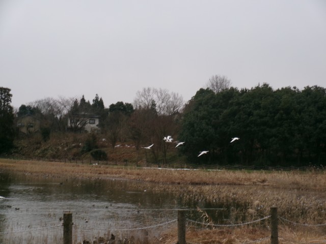 学校に戻る途中、飛び立つ白鳥の姿を見ることができました。