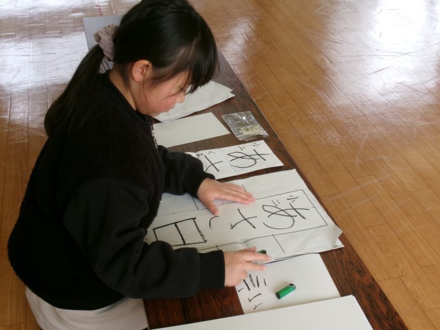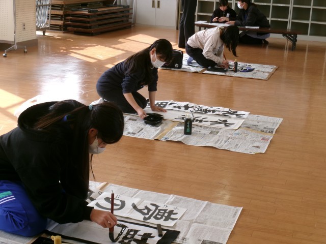 県の書初大会に参加する子供たちが、休み時間に練習しました。