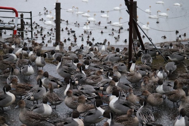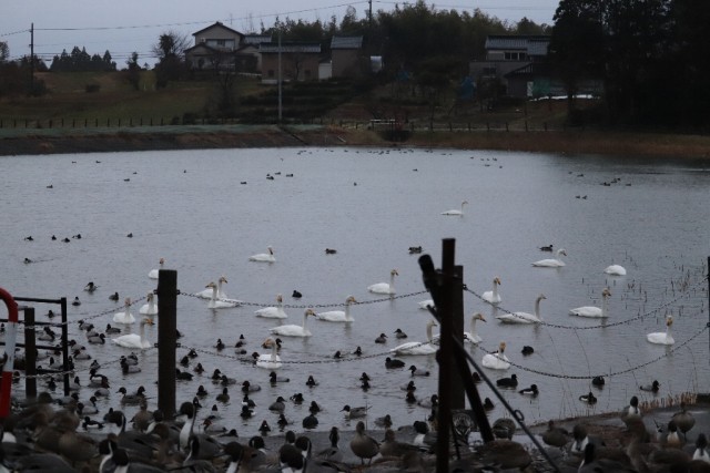 今朝の田尻池は雨が降っています。飛来数は昨日と同じくらいで50羽ほどでした。
