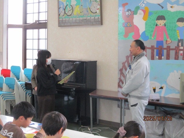 今週は「ありがとう週間」です。普段お世話になっている職員の皆さんに感謝の気持ちを伝えます。日頃のお仕事への思いを伺った後、代表児童が感謝の言葉を伝えました。言葉で感謝を伝えるのは大切だなと感じました。