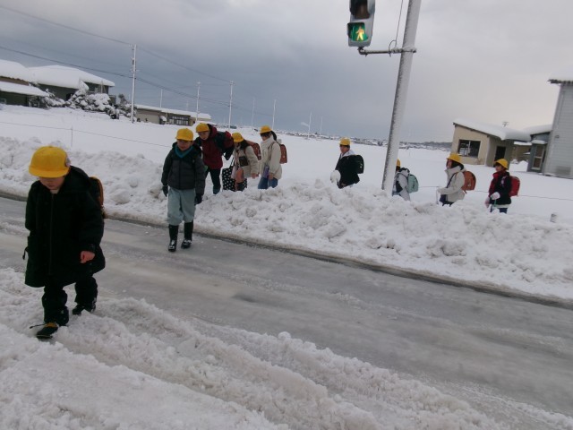 路面が滑りやすい中、元気に登校しました。