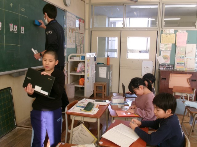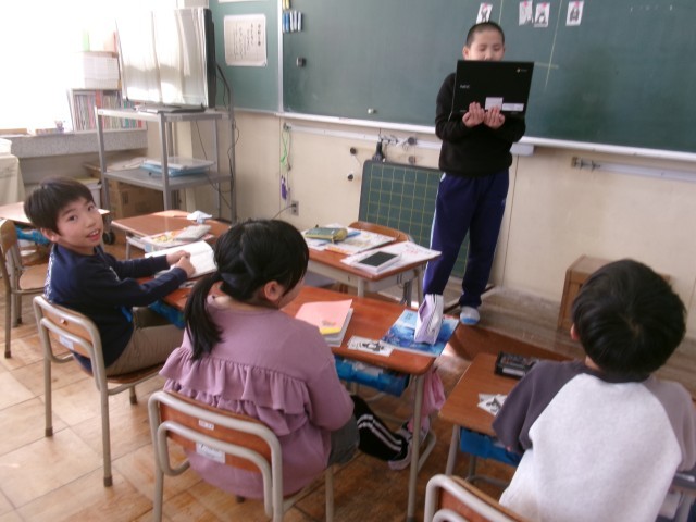 4枚の絵を並び替えて、はじめ、中、終わりを考えます。