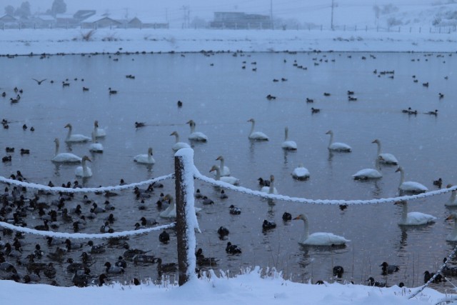 今朝の田尻池は-3度と冷え込んでいました。飛来数は昨日と同じく40羽くらいでした。