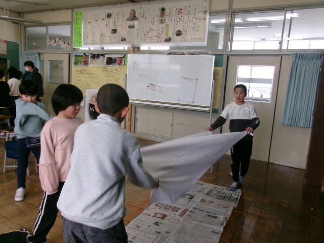 白鳥を広めようとがんばっている3・4年生。
