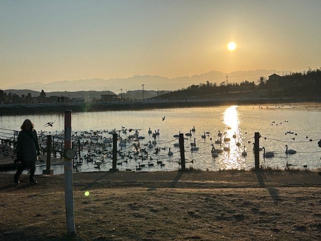 今朝の田尻池はきれいな青空が広がっていました。飛来数は土曜日87羽、日曜日88羽、今日も80羽くらいでした。朝早くからたくさんのギャラリーで賑わっていました。