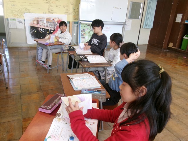自分でつくったさいころの展開図を広げたり、つないたりしながら「はこの特徴」を考えていました。