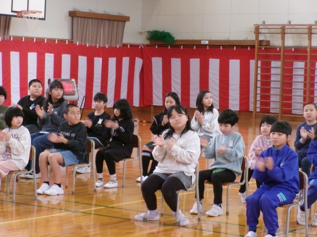 背筋を伸ばして座る6年生の姿が、在校生のお手本です。