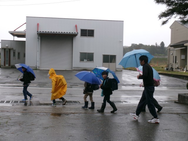 雨風が強く、安全な下校を呼びかけました。