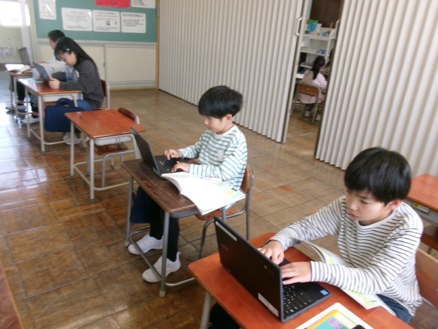 クロムブックにどんどん入力していました。