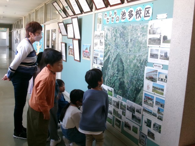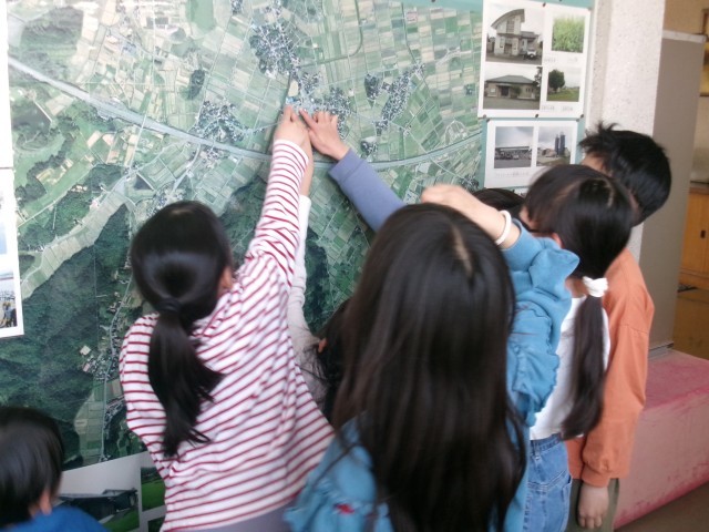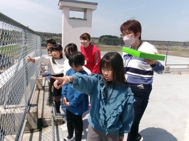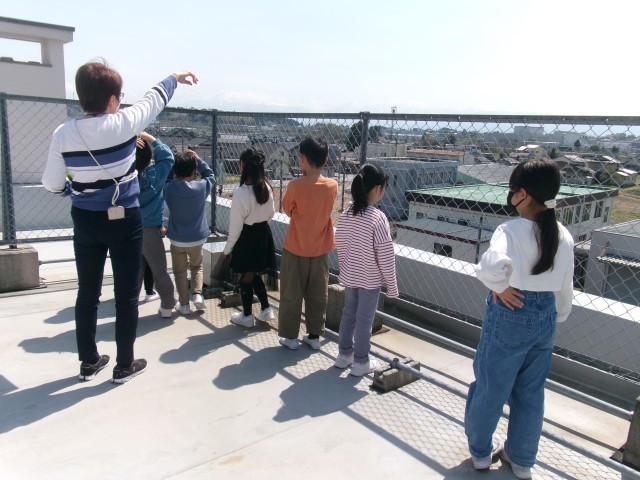 新湊大橋の奥に海も見え、興奮する子供たち。
