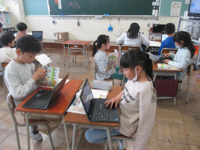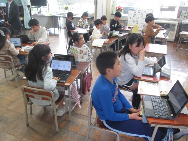 クロムブックに入力したことをもとに、ペアで伝え合いをしています。