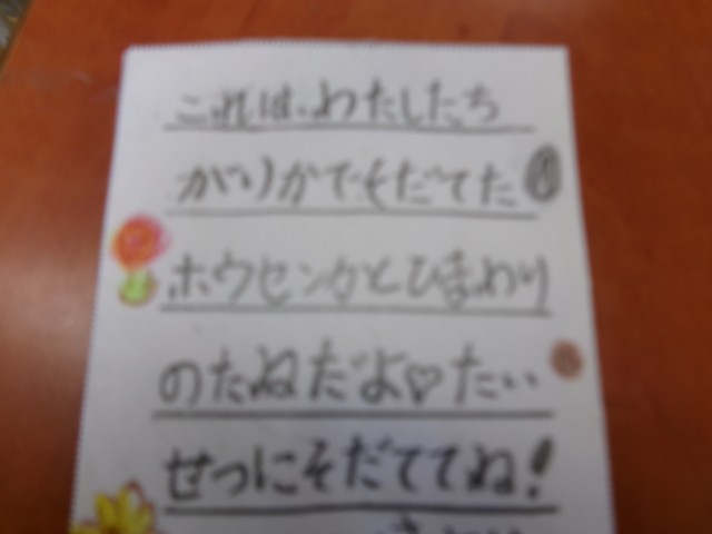 メッセージには、「大切に育ててね」「理科の勉強がんばってね」などと書かれていました。