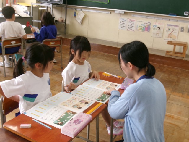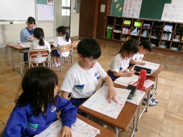 算数の学習では、各学年に分かれて、一生懸命学んでいました。