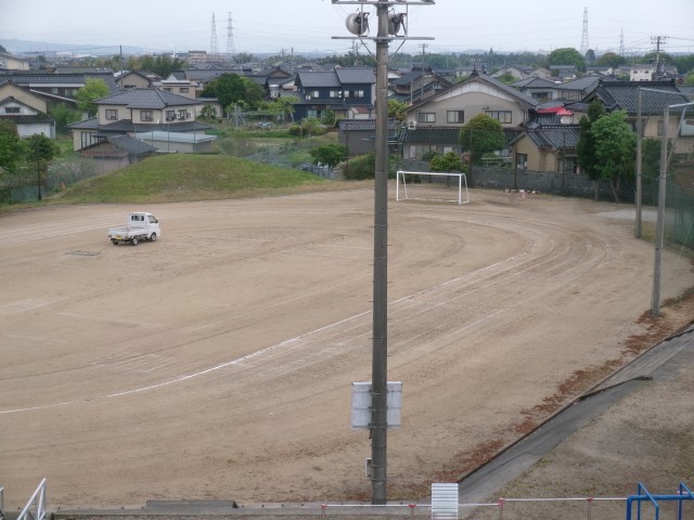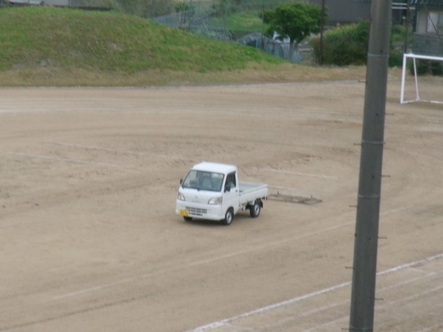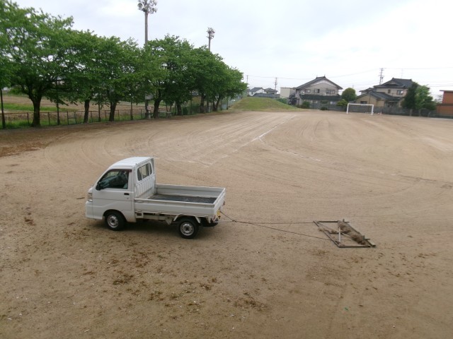 晴れ間を見て、用務員さんと近隣の学校の用務員さんで、グラウンドをならしてくださいました。