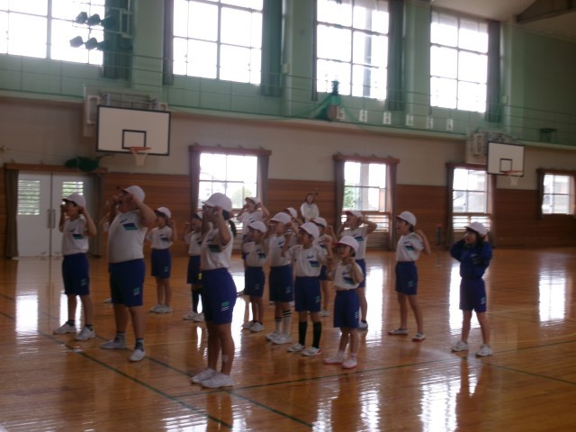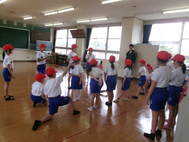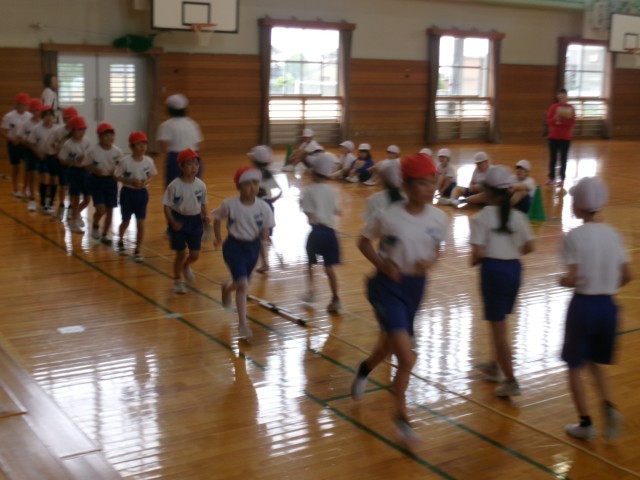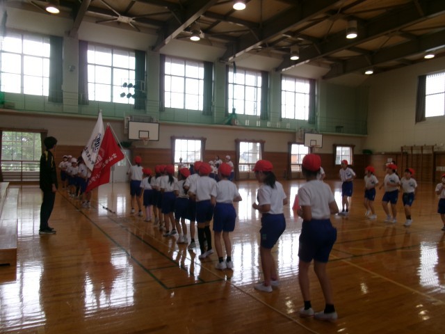 今日は体育館で綱引きの体型を確認しました。