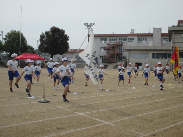 開会式から徒競走、玉入れの様子です。汗ばむ陽気の中、勝利を目指してがんばっています。