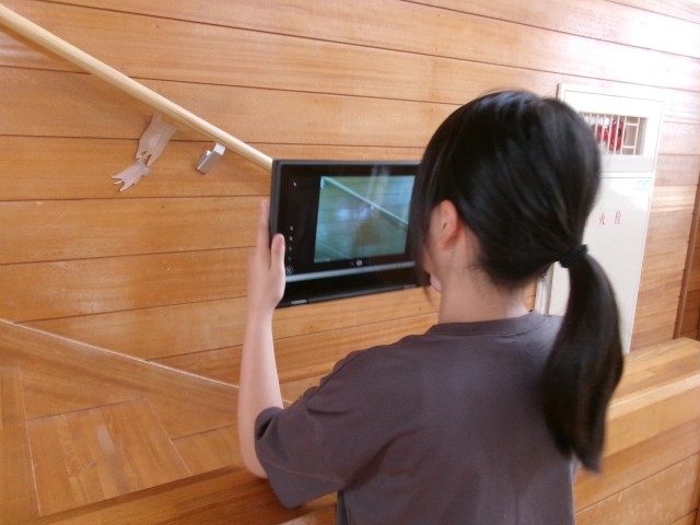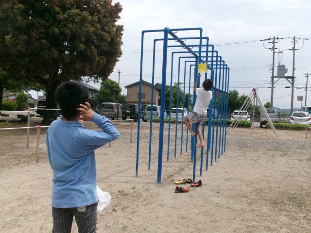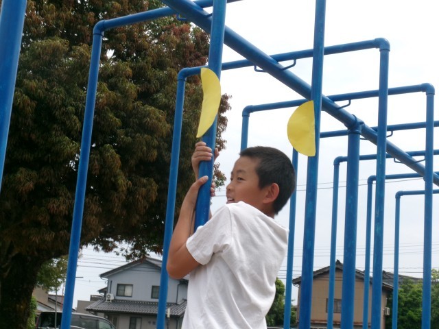 ネコがてすりにぶら下がったり、2本の登り棒を利用して満月に見立てたりしています。