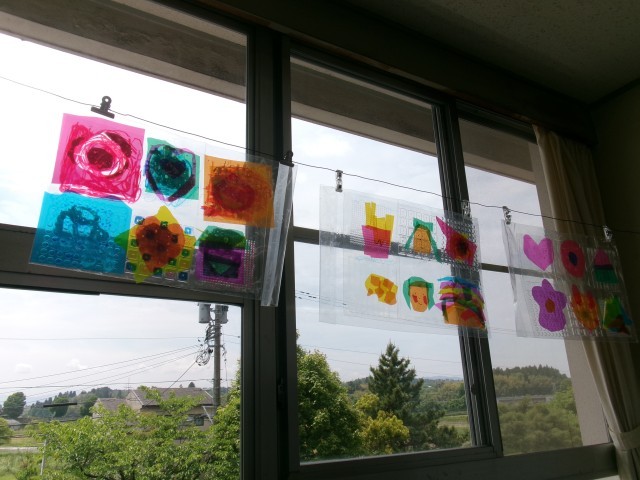カラーのセロハンを使った作品づくりが楽しいようです。