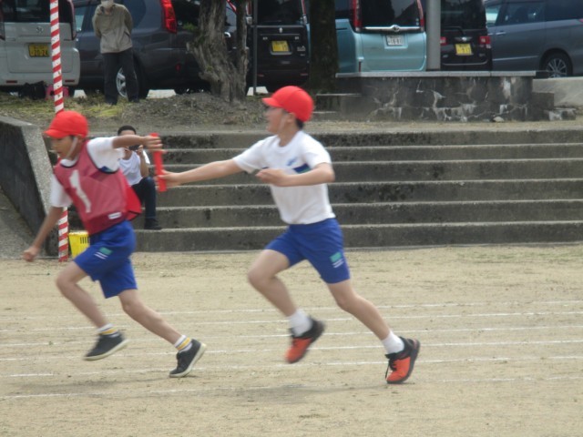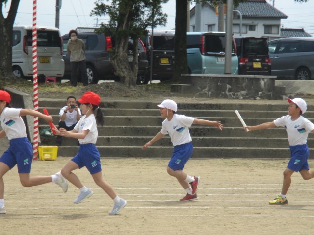 運動会の最後の種目リレー。池多っ子みんなでバトンを繋ぎ、全力で走りました。