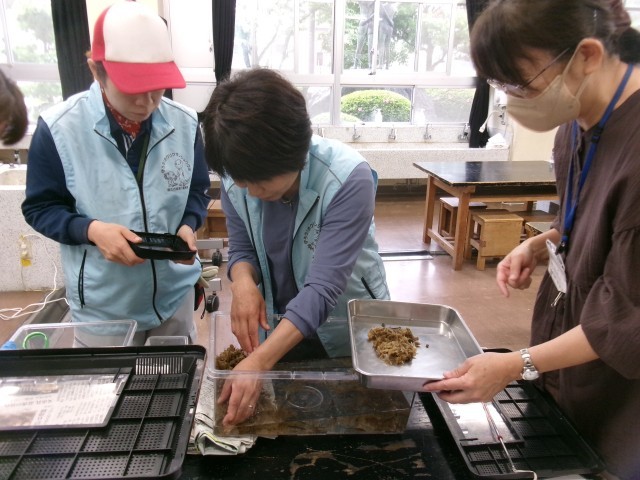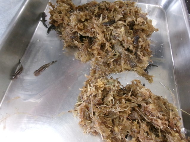色が黒くなり、コケの丘に上がるホクリクサンショウウオも出だしたため、ファミリーパークの方が一部を引き取りに来られました。