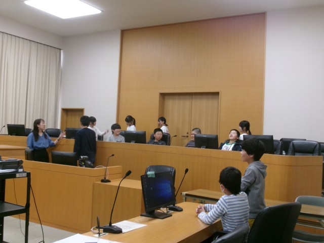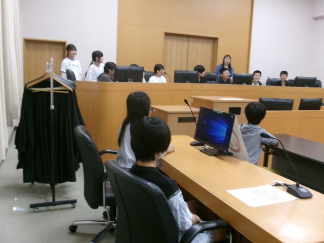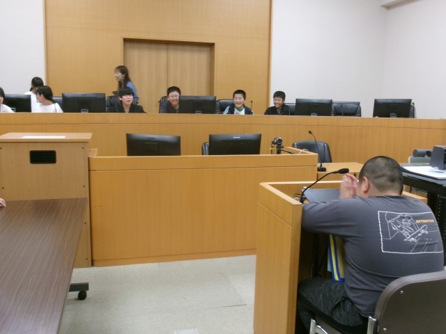 裁判や裁判員制度などのDVDを見たあと、実際に法廷に入りました。