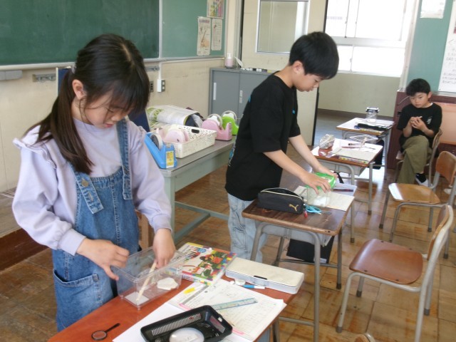 観察の後、さなぎが、さらに過ごしやすい「住まいづくり」に取り組みました。