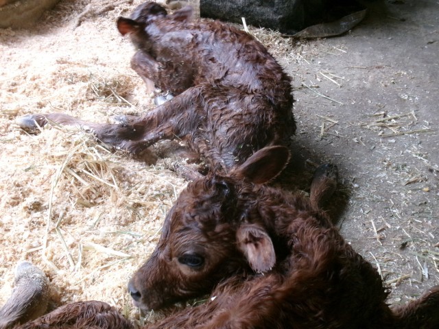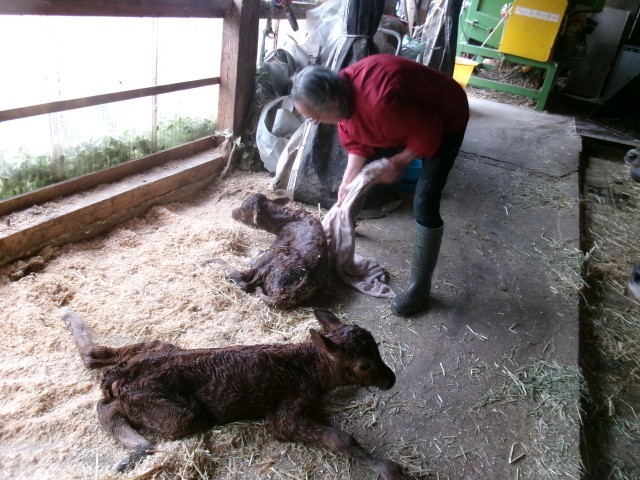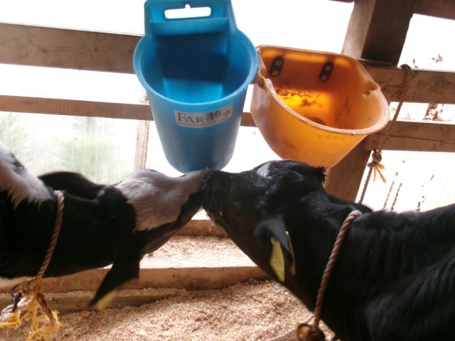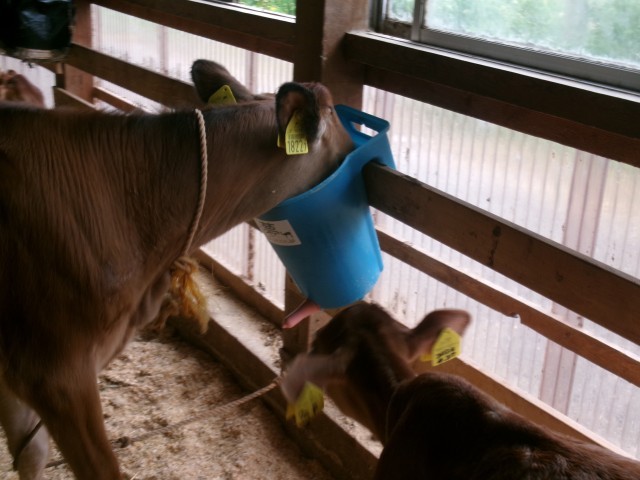 容器も取り合いです。首を突っ込んで最後の一滴をなめている牛もいました。