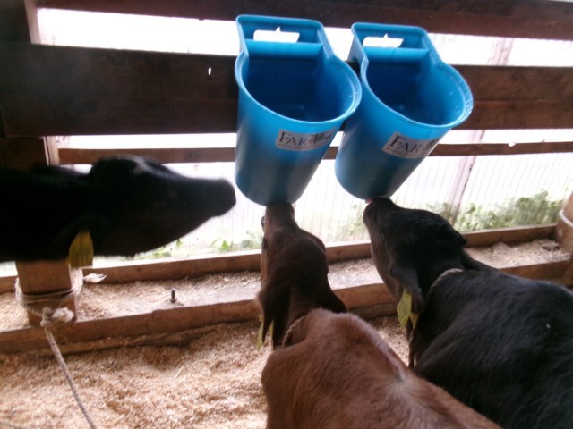 牧草や配合飼料が食べられるようになる前は、ミルクを飲んでいます。