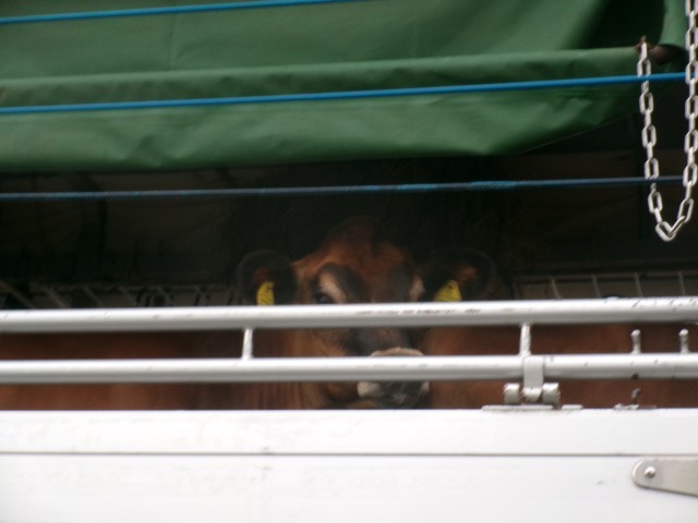 トラックの中の牛はつながれていません。
