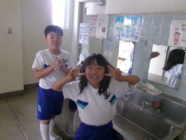 体育が楽しみで、もう移動している子供たちもいました。