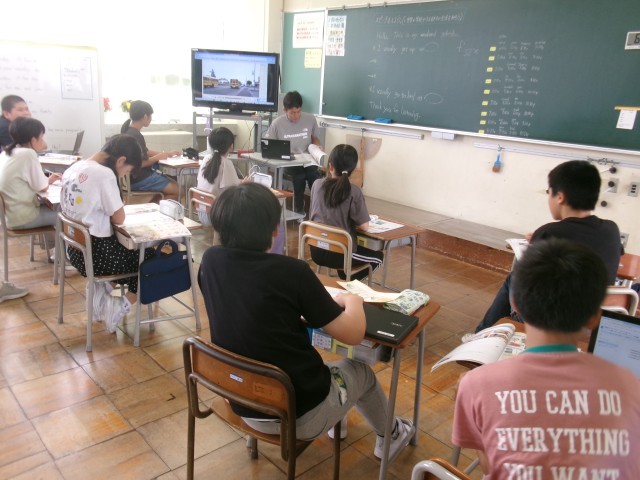アメリカの学校の紹介動画を見ながら、聞き取りを行っていました。