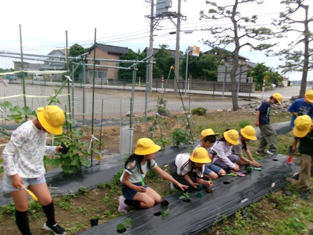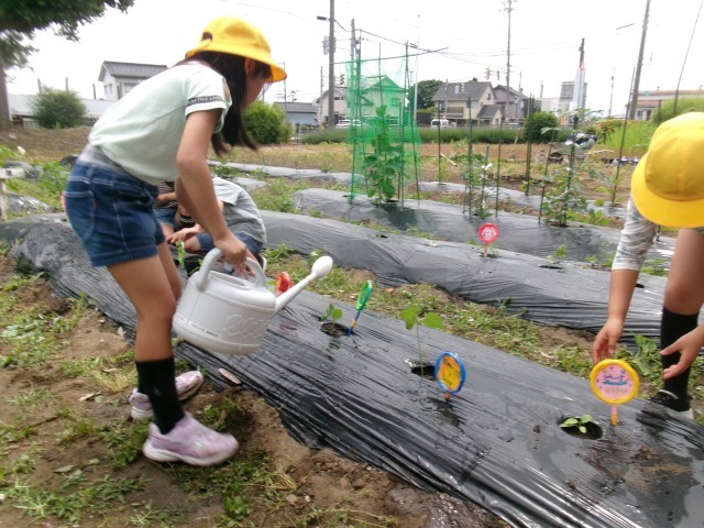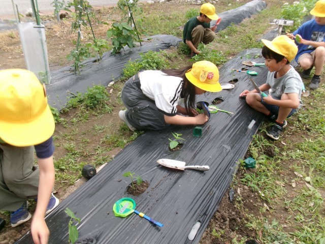 自分の苗に付けた名前を呼び、観察しながら、収穫を楽しみにしている子供たちです。