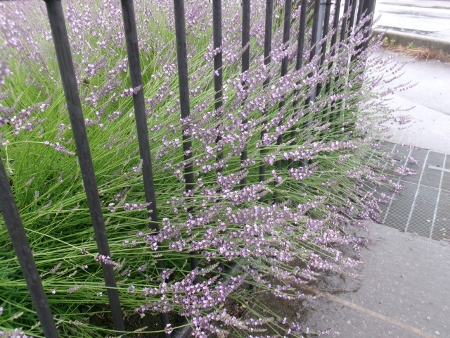 本校自慢のラベンダーが雨で倒れていますが、香りが立っています。