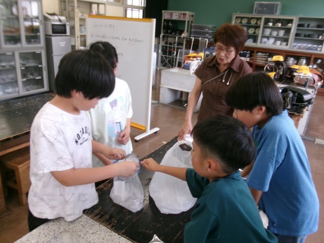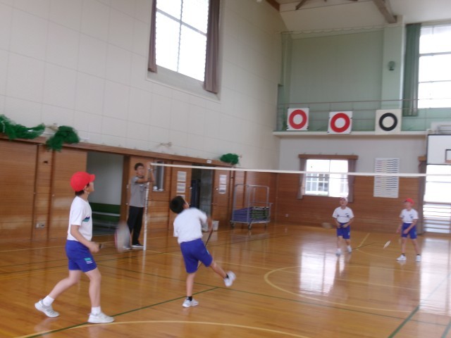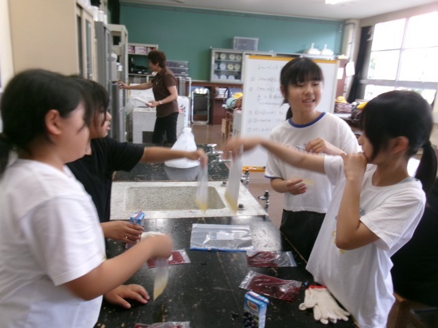 氷と塩で固めるシャーベットづくりとバドミントン。
