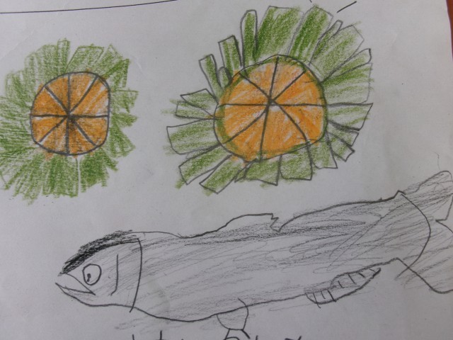それにしても、子供たちの絵(ます・ますのすし)は、なかなかリアルです。