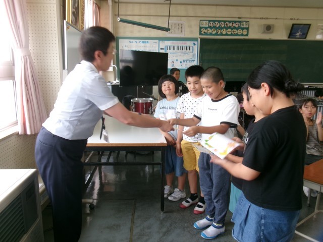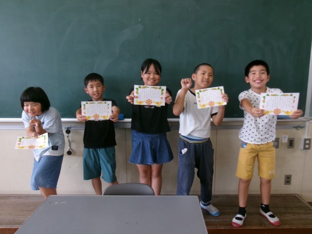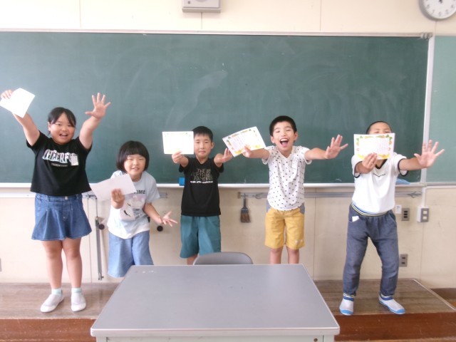 思いがけない表彰に驚き、喜ぶ子供たち。