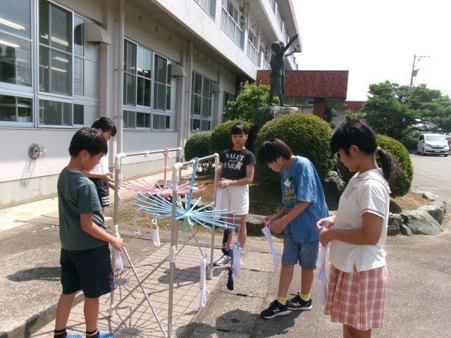 今日は、洗面器を持って登校してくる子供がたくさんいました。