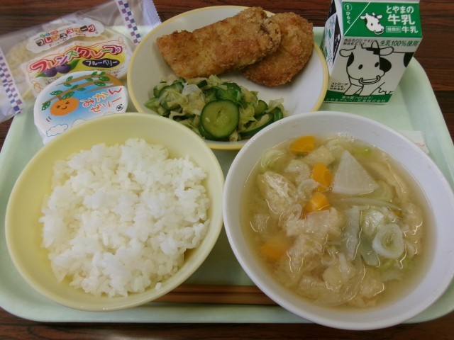 今日の共通の献立は、ごはん、牛乳、おひたし、具だくさん汁です。