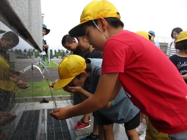 見学の最後には、おいしい富山市の水を飲んで元気をもらいました。