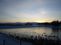 少しずつ日の出の時刻が早くなってきました。白鳥たちは今朝も静かに泳いでいました。...